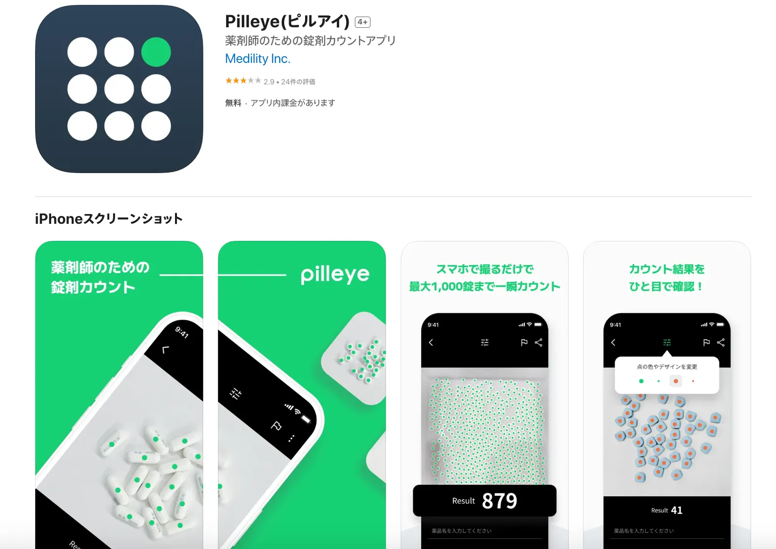最近は一包化も多くなり、バラの規格品を扱う薬局も増えたのではないでしょうか。こちらはバラの錠剤やカプセルを写真に撮るだけで自動カウントしてくれるアプリです。煩雑な錠数計測から解放してくれるなんて革命的ですよね。