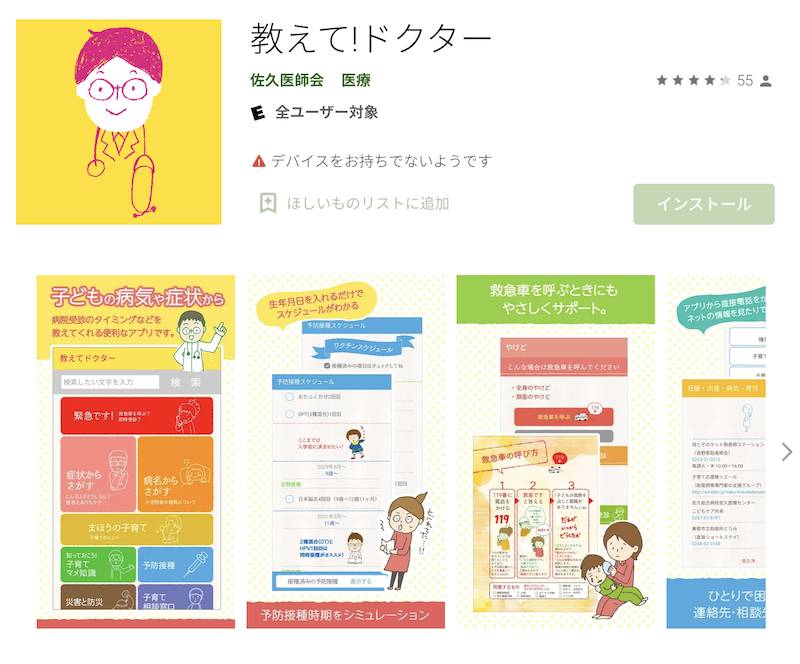 このアプリは子どもの病気とホームケア、病院受診の目安などを簡単に検索・閲覧できるようまとめたものです。現役小児科医監修のアプリなので、エビデンスもしっかりとした内容になっています。