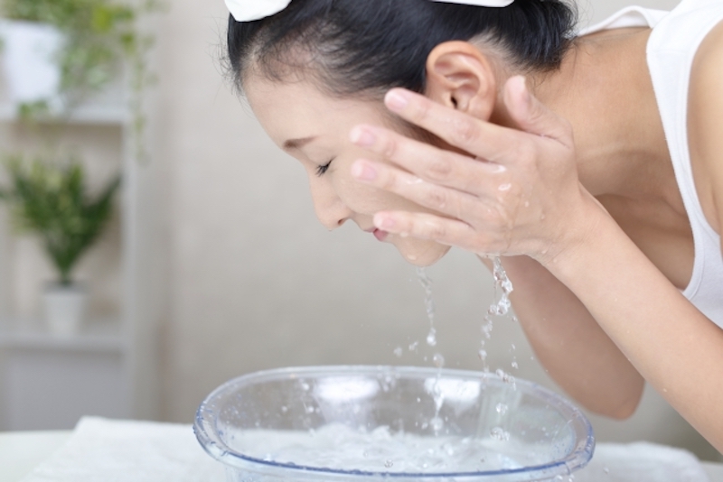 1日2回、水または32~34℃程度のぬるま湯で洗います。指で洗うのではなく泡を転がすようにくるくると洗いましょう。
