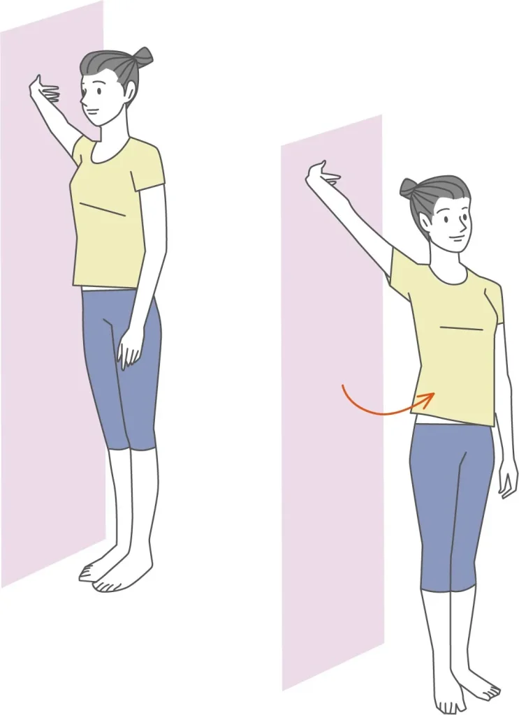 - 壁の横に立ち、手を壁につける。